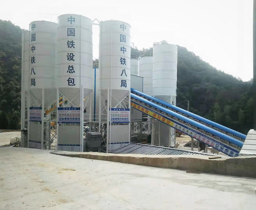 粉倉頂置式全封閉環(huán)保型HLS240混凝土攪拌站